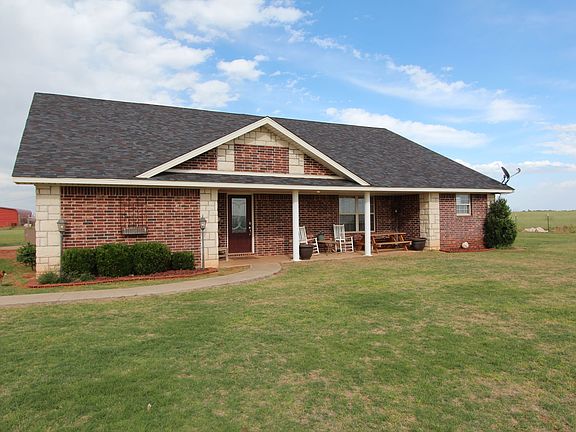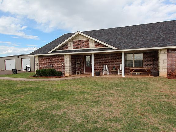 Beautiful brick home on a spacious 10 ACRE tract located between Elk City and Sayre. Lovely spacious kitchen with moveable bar and granite countertops. Lots of family space with 4 bedrooms and a private office are just a few of the amenities of this country retreat. On this property you'll find TWO 30x50 buildings with electricity and a utility shed. Enjoy summer evenings with the above ground pool and deck. Generac generator recently installed for peace of mind during Winter months or storm season. This home is located in Merritt School district.