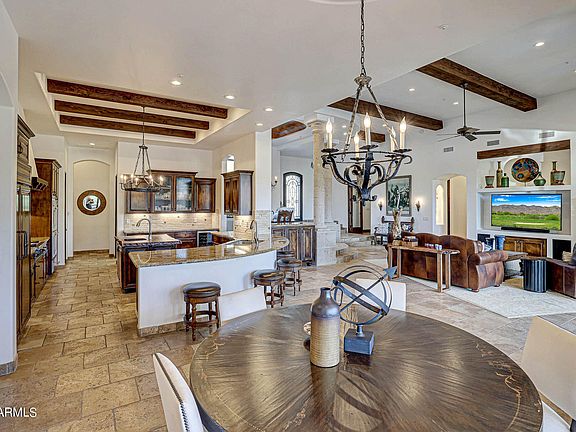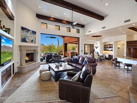 Guard-gated Troon Village sets the backdrop for this Old World-style residence that has undergone meticulous upgrades, making it a true gem in this exclusive enclave. The residence offers breathtaking views of the McDowell Mountain Range from both the front and back. The open floor plan, soaring ceilings, and retractable pocket doors seamlessly blend indoor and outdoor living spaces.