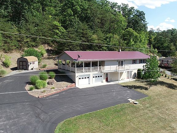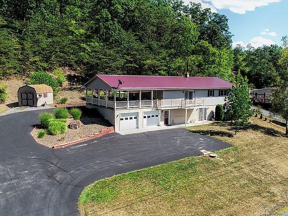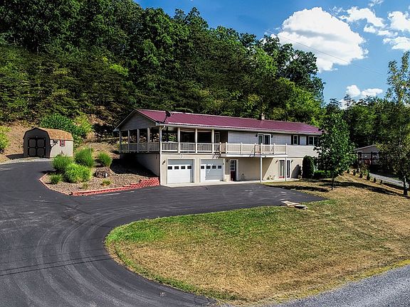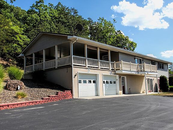 Raised Ranch located just outside of McConnellstown on large lot overlooking Hartslog Valley. Home sports 4 bedrooms 1 full bath and 2 3/4 baths. Huge ( 23 x 28 ) porch off kitchen, two car integral garage. Detached 1 car garage, workshop with electric, oil FHA heat ,wall ac.carport and lean to . Basement is mostly finished and has a large 21 x 27 family room. Eat in kitchen with island. Paved driveway with access to both levels. Easy drive to town and Seven Points marina. .85 acre lot on private road.