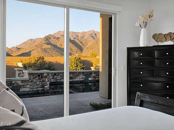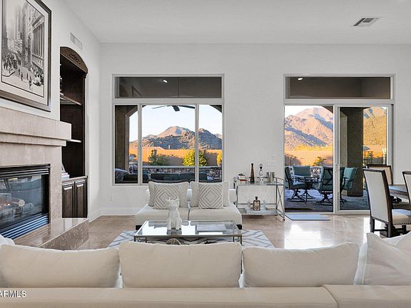 Exquisitely remodeled with a contemporary flair, this breathtaking residence is perched atop the highest elevation lot boasting panoramic 360-degree views. This Toll Brothers residence has unobstructed and commanding views of the city skyline, twinkling city lights and picturesque views of the McDowell Mountains throughout. Nestled within the prestigious 24-hour guard-gated community of Cimarron Hills, this exceptional home occupies a corner lot with NAOS behind and sided to the home with no neighbors bordering ensuring unparalleled privacy and an elevated living experience. Cimarron Hills community elevates the lifestyle experience with amenities such as a stunning negative-edge heated lap pool with panoramic views of the city and McDowells, tennis courts with LED lighting also with 360 degree views, direct access to private hiking trails, a state-of-the-art fitness center and 24 hour roving security patrol.