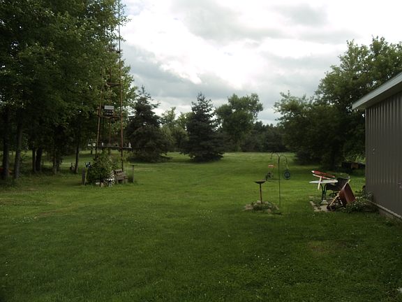 Nice 5 acre parcel ideal for a mini farm. Home consists of 2 large bedrooms, l full bath, formal living & dining room, TV or den for reading, eat in kitchen w/appliances, laundry room and new 28 X 30 garage. Updates include, roof, well & pump, water softener & sump pump, garage, wood flooring, carpet & Paint. last 5 years.