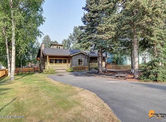 Rustic Alaska house! Cute back unit is cottage style. Front unit has great space for family, beautiful updated kitchen & dining, rec room w/ wet bar serving, Tasteful remodeling of baths! Could be single family w/MIL. Lots of updating: new interior paint & trim, new windows, custom beautiful birch bannister & builtin book case, new flooring, new roof & more! See complete list! Income potential!