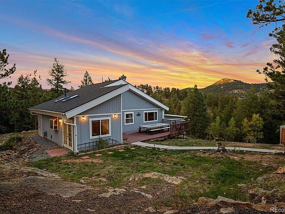 The home features inviting living spaces filled with natural light, a game room/loft above the family room, cozy wood accents, and amazing views. Step out onto the expansive deck to take in the serene mountain landscape, or relax by the fire pit or wood burning stove after a day of hiking, biking, or skiing nearby. Surrounded by pine trees and wildlife, this is true Colorado living.
