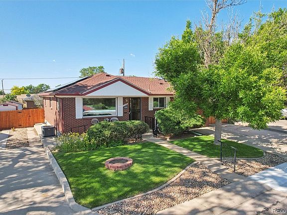 ONE HELL OF A BUY AT $500K! This home is so stinking cool! Lots of reasons why: #1: NEW paint & carpet throughout this 4 bed/2 bath/finished basement home. #2: WAAAY oversized 3-car size detached finished garage, with prof. finished epoxy floor, heat, cabinets, workbench, air compressor lines piped throughout, 18-foot wide garage door & attached awning make this an awesome shaded courtyard. #3: spacious eat-in kitchen w/42” cabinets (pull out drawers, lazy susan) all appliances – just the place to enjoy family dinners and Sunday morning brunches. #4: bright & spacious living room w/tons of natural light from the BIG front window – perfect spot to relax, read a book, & enjoy a cup of coffee. #5: 3 bedrooms on the main floor offers convenience & privacy. #6: BONUS room – right off the kitchen w/sliding doors to the courtyard drive/patio & garage, this oversized room includes the dining area & an area to chill and enjoy movie night, watch your favorite games or cozy up by the fireplace. #7: the huge family room/rec room/game room in the fin basement – you can make a TV area, pool table/ping pong table area, playroom – lots of options & it has long closets for extra storage. #8: 4th bedroom – lots of space for all your furniture, whether you make it a bedroom/office/playroom/craft room or ??? The 2nd updated bath is conveniently located in the finished basement for all to use. #9: the prof. landscaped (& easily maintained) backyard to enjoy summer BBQ’s sitting under the awning or the covered patio or playing catch on the grass – the perfect spot to enjoy warm Colorado evenings. You get 2 storage sheds to hide away the toys/lawn chairs/lawn mower/etc. #10: Solar system to keep utility costs LOW! #11: Conveniently located near shopping/dining, RTD, Boondocks, NG Rec, EB Rains Park, Kiwanis Park/Pool & minutes to I-25, you are gonna love it! MANY more reasons that this home could be for you, but we want you to find yours. Schedule your showing today & find your reasons!