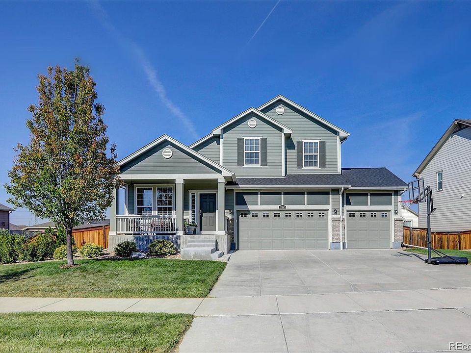 Pride of ownership shows in this fantastic Parker home. Welcoming front porch adds curb appeal and large lot on a greenbelt feels like a corner lot. You are greeted into the home with an open concept layout with vaulted ceilings, gleaming wood floors and large windows to bring in lots of natural light. Main floor bedroom could be a guest space, an office or a homeschool room. Full bathroom on main floor by bedroom. Family room has vaulted ceilings and gas fireplace. Kitchen has granite counters, fresh tile backsplash, ss appliances and leads to the amazing back deck and beautifully landscaped yard. Enjoy Colorado's great outdoors with this beautiful outdoor living space. Upstairs you'll find the en suite master with 5 piece bath and walk-in closet. Very spacious with big windows to let in natural light. Two more bedrooms and full hall bath provide plenty of space. Laundry room conveniently located upstairs. Finished basement has 2nd living/bonus room and 1/2 bath. Radon mitigation system. Rounded corners throughout home. You can not beat this location in the award-winning Town of Parker - right next to a greenbelt leading to the neighborhood park and fields, fantastic Douglas County schools and charters, local shops, restaurants, outdoor activities abound with recreational areas and trails in all directions. Easy Commute to I-25, E-470, DTC, Downtown Denver, DIA, the Rocky Mountains. This is a gorgeous home in a welcoming, safe and friendly community!