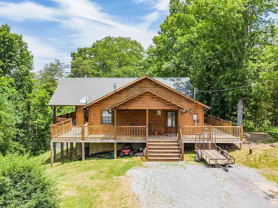 Custom built home on nearly 7 beautiful unrestricted acres with plenty of space to build additional cabins. Utility water is at the road, and can be brought to the cleared area by the road or to the main house, per owner. Home offers great privacy, but yet is conveniently located out of the high traffic areas to Pigeon Forge, Sevierville, Wears Valley and Knoxville. Home has huge open floor plan, with a wall of windows to let in the natural light and an over-sized kitchen with TONS of counter space. This home is an entertaining dream-- with optimal "gathering space" in the kitchen and great room, moving out to the decks. Is currently a permanent residence but would work well as an overnight rental property. Large area in back is fenced with chain link for pets or kids! Corner of the property on left of driveway by road had a mobile home on it when owners purchased property. Lot has city water hookup available, well, septic and electric-- all ready for your new cabin or guest house!