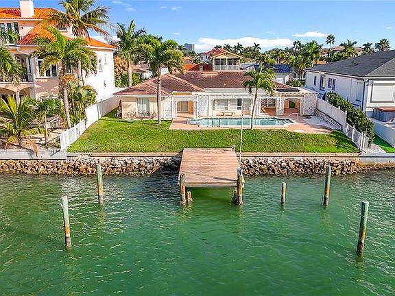 Waterfront home in Yacht Club Estates that did not flood during Hurricane Helene and had zero water intrusion or claims. Located in the back of the neighborhood, the property benefits from underground utilities, natural gas, and quiet surroundings. This original home is priced at land value. Enjoy true ground-floor living with 3 bedrooms, 2 bathrooms, an attached garage, 2,210 sq ft, and easy walk-out access to the pool and backyard. The open water views toward St. Pete Beach and Treasure Island make this property ideal for future improvements or a complete new build. Yacht Club Estates has no mandatory HOA and features an active community with a Boat Club, Women’s Kayaking Club, Moms Club, Book Club, Wine Club, and more. Just 1 mile to Treasure Island Beach, close to shopping and dining, and 30–40 minutes to Tampa International Airport. Don’t miss this amazing opportunity.