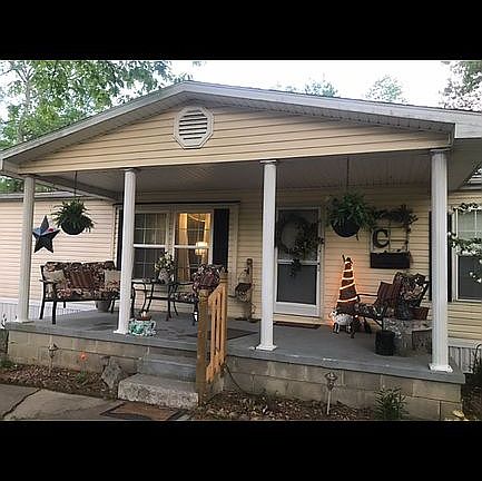 3.5 acres with woods, 3 bedrooms, 2 full bath, front porch, back screened in porch,carpet/ wood lamented flooring, Appliances 2 yrs old, ceiling fans in all rooms, new metal roof(1 yr old), heat/air unit(4 yrs old), nice size out building with electric, fenced in area in back, chicken coop,concrete walk all around. City water, septic tank. For sale only!