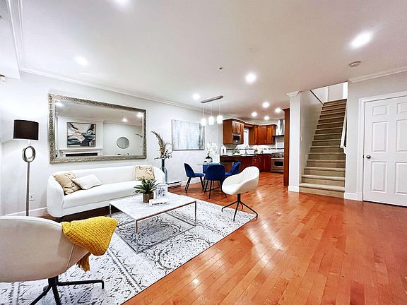 Charming West End townhome inspired by classic New York brownstone design, tucked away on a peaceful, tree-shaded street. This residence features both a private rooftop retreat and a welcoming front terrace. The main level offers a gourmet kitchen complete with granite counters, ample cabinetry, a Wolf gas cooktop and Subzero refrigerator. Rich hardwood floors, elegant crown mouldings, vaulted ceilings, and recessed lighting add warmth and character throughout. The upper floors include two generously sized bedrooms and two full baths. The primary suite accommodates a king bed with ease and includes a custom-designed closet system plus an ensuite showcasing dual vanities, a deep soaker tub, a separate glass shower, and a skylight that fills the space with natural light. 1 parking 1 locker