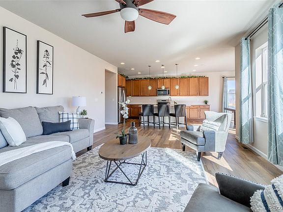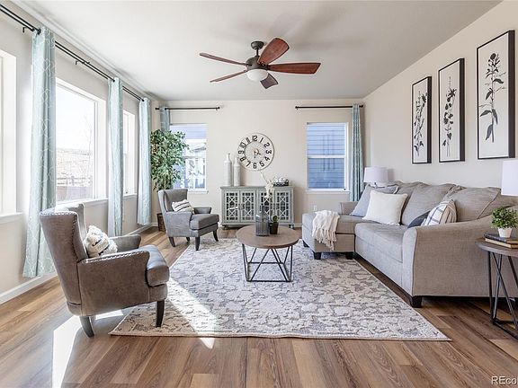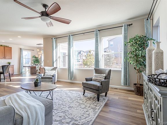 Welcome home to your dream home in the highly sought after Terrain neighborhood of Castle Rock! Nestled on a beautifully landscaped corner lot, this 3-bedroom, 3 bathroom home offers modern upgrades, thoughtful design and access to incredible community amenities. Step inside to discover luxury vinyl flooring that flows throughout the first floor and all bedrooms, creating a stylish and durable foundation for everyday life. The open-concept floor plan is perfect for entertaining, enhanced by the whole-house speaker system. Featuring 42" maple cabinets and a walk-in pantry, this home offers plenty of storage space! This stunning home features three bedrooms upstairs. The luxurious primary suite has a walk in closet with built-ins and an en-suite bathroom with an extra large shower and rain shower head. Two additional bedrooms that share a well appointed second bathroom. The unfinished basement is a blank slate, ready for your personal touch; whether you envision a home theater, gym, additional living space or simply need ample storage for all of your gear! Enjoy the beautiful Colorado outdoors in your beautifully landscaped backyard. The corner lot offers privacy with only one neighbor! This home has been carefully maintained and thoughtfully upgraded, featuring a radon mitigation system, water purifier and softener, lightning surge protector and a new roof with hail resistant shingles and a transferable warranty. With easy access to the neighborhood amenities, bike paths and hiking trails, this home has it all!