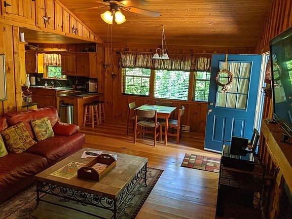 Looking for an active fully furnished turnkey Vacation Rental property investment? This UNRESTRICTED home has a successful history with VRBO 928294 where you can check out the positive comments. Very private yet close to town with easy paved access driveway. 2 Bedrooms with bonus room for TV sitting area or overflow sleeping. Enjoy the peace and serenity of this cozy cottage with a gas log rock fireplace and freestanding gas heater in the dining / kitchen area for the cool mountain mornings. The large 14' X 24' back porch is great for entertaining or just relaxing while cooking on the grill or soaking in the hot tub. There's a 12' X 20' storage building and a 20' X 24' carport with lots of parking and turnaround area. The home has some current booked tenants through Sept 22nd, so we need advance notice on showings.