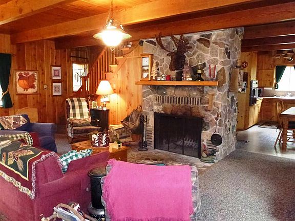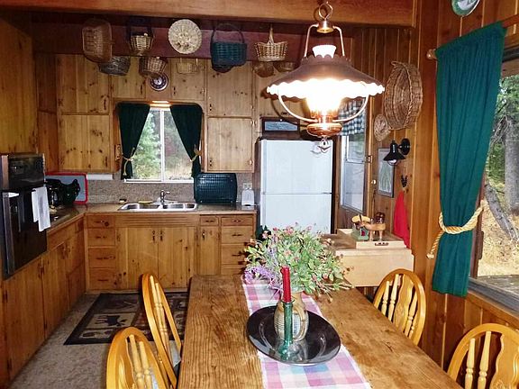 Cute as a bug's ear! Meticulously maintained & oozing charm, this cozy cabin sits on an over sized lot, just a block from the lake. With charming details throughout & loads of sleeping space for all. Three bedrooms, 2 baths, separate laundry, and a workshop area for tinkering, too! The parking area is large & allows room for multiple cars, RV, etc. Large deck area for morning coffee & more! This lovely cabin is being offered turnkey w/ a minor exclusion list. It's move in ready-be here for the holidays!