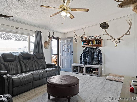 Welcome to your new sanctuary just 15 minutes west of Cheyenne, WY! Nestled on a generous 22 acre lot, this charming 3-bedroom, 2-bathroom home offers the perfect blend of comfort and convenience. Spanning 1,296 sqft of living space, this residence is adorned with durable vinyl flooring throughout, creating a seamless flow from room to room. The heart of the home features a cozy wood stove, ideal for warming up on those chilly Wyoming evenings. The wide open space surrounding the property provides an airy feel of freedom and tranquility with NO HOA, while a detached garage ensures ample storage for your vehicles and hobbies. Enjoy the simplicity of rural living with the comfort of modern amenities in a location that's just a stone's throw from everything Cheyenne has to offer. Make 1135 Dusty Rd your forever home and embrace a lifestyle where the beauty of Wyoming's landscapes is your everyday backdrop.