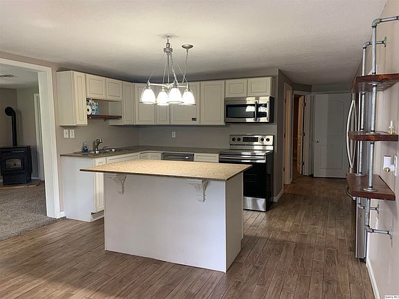 Great country living on 5 acres. There is a creek that runs through this property and attracts large deer right in your backyard. (See pictures.) Home has had lots of updates including: newer furnace, AC, water heater, pellet stove, and insulation. New septic. Possible fourth bedroom, if needed. This is a berm home with no basement. Lots of storage in the attic. Home also has fiber internet. A short drive to Liberty schools. You won't want to miss this one.