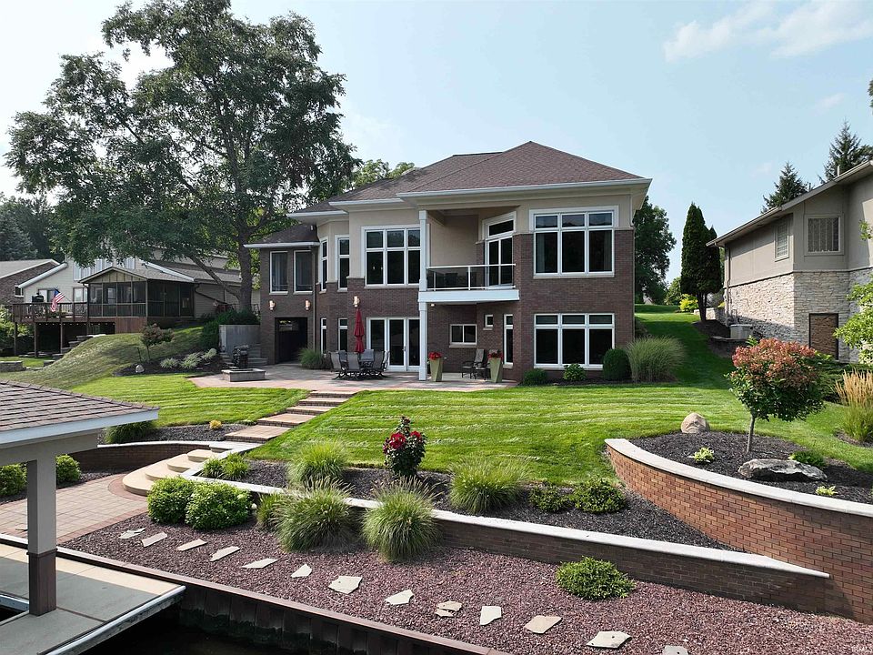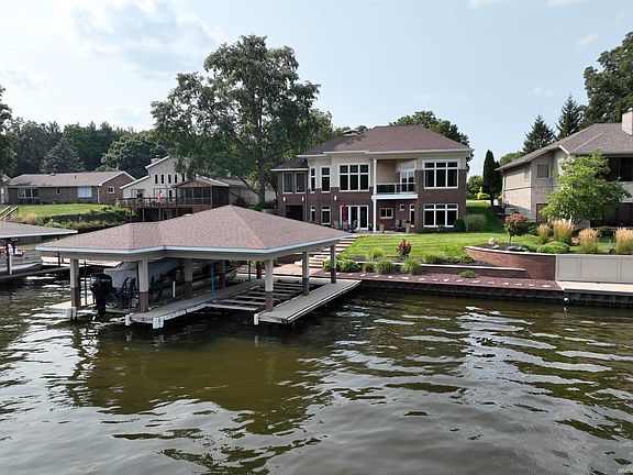 Main Lake Freeman, Top Quality Finish and Construction by Souligne Builders, designed by KJG Architecture. The Best Lake Freeman has to offer with one of the best views looking down the lake. Custom Brick/Stucco ranch style with walkout finished basement, 6" Walls, Marvin Exterior Windows. Main Level has 14 ' tray ceilings with recessed/rope lighting. Main Level Kitchen has views of water, granite bar top & counters, tile backsplashes, Mouser Cherry Cabinets with high end updated stainless appliances. Main Bedroom Suite overlooking lake with private balcony, tiled shower with rain water faucet, garden tub, dual granite vanity, 8x12 walk-in closet. Main Level Living areas have hardwood and porcelain floors, 2 sided gas fireplace in dining area. Finished basement has a split 2 bed/2 full bath floor plan with Custom Cherry/Granite Bar area, theatre room with surround sound, storage room with built-in shelving. Exterior Extra's include; balcony off main bedroom, screened porch off kitchen/dining area with lake views, 1/2 bath w/ exterior entry from lower level patio, fire pit, lakeside storage area which can double as an additional porch, inground lawn irrigation, 2 bay covered hydraulic boat dock system with concrete piers and finished ceilings, oversized concrete driveway. Utilities include; updated zoned Geothermal heating/cooling, heated main bath & basement floors, private well & septic system. Custom Hunter/Douglass blinds stay with purchase. Carpeting in bedrooms is Masland brand. 44x28 3 car att. garage with epoxy finish, 1/2 bath, stairway leading to walkout basement. Whole House audio system with recent upgrades by Sound advice controlled by your I Phone.