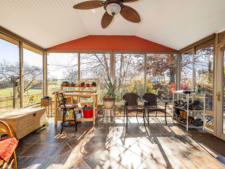 Have you been looking for a property situated close to town yet in the country? This property offers both the convenience and tranquility you may have been looking for! This 3 bedroom 2 bathroom home boasts a spacious interior. The open kitchen/living room are truly the heart of the home balanced by the three bedrooms on one side and the library and separate office space on the other. The addition of a large sunroom allows for year round enjoyment of natural light, as well as the perfect spot to start your garden plants to be planted in your already established raised beds. The extensive landscaping creates a picturesque environment, bringing in birds of all varieties to complete the serene haven for any nature enthusiast. Two separate outbuildings are equipped with electric making the perfect woodworking location/man cave/she shed!