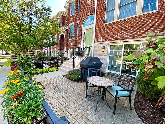 FOR SHOWING, CONTACT DOUG: 847-226-5213 - 2.5% COMMISSION TO BUYER'S AGENT. Stunning, sought after Georgian Courts row home in popular downtown Downers Grove in excellent condition, with private 2-car garage. Hardwood floors throughout and main floor completely refinished in 2020. Spacious, kitchen with stainless appliances, granite countertops, stone backsplash, 42” cherry cabinets, LED under cabinet lighting with an additional large buffet bar and cabinets. Private newly re-planked and stained balcony off kitchen with gas grill hookup. Large open living room (13x21’) with fireplace. Great for entertaining. Two large bedrooms (13x14’ and 13x20’) each with a private bathroom boasting granite vanities and all Kohler fixtures. Master BDR features brand new built in tile shower and a remodeled walk-in-closet for additional storage. Additional storage closet also created on garden level, plus attic storage with retractable ladder with access from third floor. You won’t find this much storage in any other like unit! Garden level bonus room (12x15’) with sliding doors that opens to a lovely courtyard patio. Perfect for an office, bedroom or recreation room. ADT Security ready. New water heater (2020). Epoxy garage floor. Just blocks from Metra, restaurant/bars, Tivoli movie theater, Farmers Market, Cruise Night, library, and Fishel Park. Convenient to I-88 and I-355.