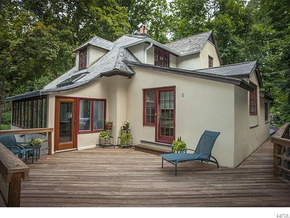 Beautifully renovated carriage house loaded w/superb details of utmost quality. Solidly constructed in 1868, converted to a residence in 1939, painstakingly restored in 1995. Classical architectural detailing includes stucco exterior, cedar shake roof, brick & slate trim on sills & entry, and a second-story pulley on a beam. Living room w/fireplace & built-ins adjoins step-down sun room w/door to deck. Superb custom built-in Shaker-style cherry wood cabinetry in dining room & kitchen. Gourmet kitchen features Gaggenau cooktop, oven & dishwasher. Main floor master suite w/door to deck. Three bedrooms & a bathroom reside upstairs. Laundry, utilities & work space occupy the walk-out lower level. Upgraded mechanicals include a whole-house generator. A private slate terrace serves the rear of the house & connects via walkway to the deck. The park-like property is ever green & canopied by established trees & plantings, w/lush lawns ringed by low stone walls. A unique and special residence.