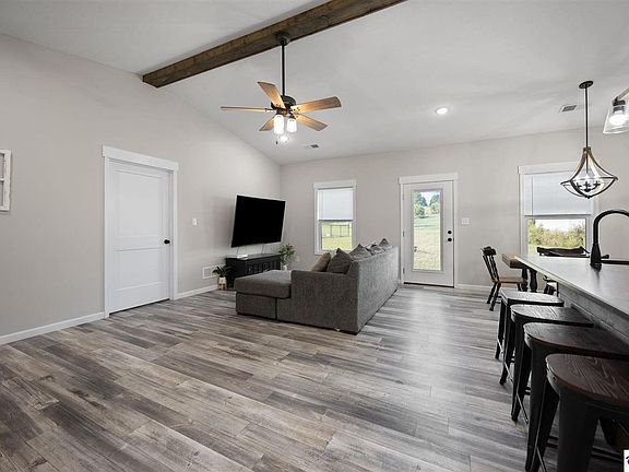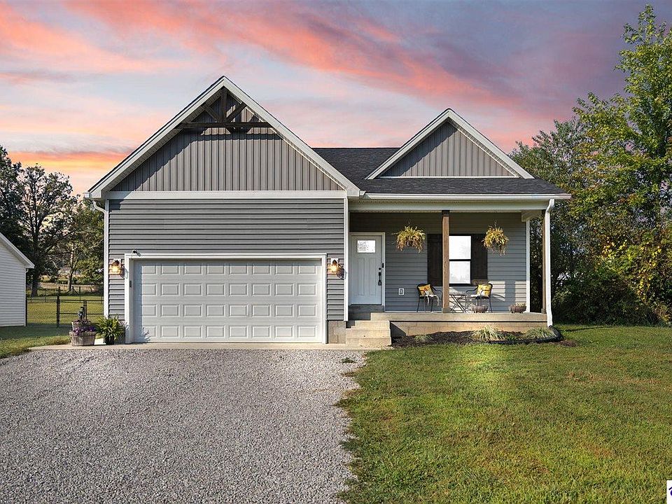 Experience the pinnacle of country living in the impeccably maintained four-bedroom, two-bath home that feels as good as new. Every detail reflects thoughtful design-from the rich luxury vinyl plank flooring & tray ceilings to the heart of the home; the expansive open-concept living area. The gourmet kitchen is a culinary haven, boasting a generous island with premium leather granite, a spacious walk-in pantry with upgraded shelving and abundant natural light. Retreat to the serene master suite, your personal sanctuary; complete with dual vanities, a large walk-in shower, a separate soaking tub, and a generous walk-in closet. Set on an expansive lot offering an abundant amount of privacy and captivating views, this property is conveniently located just minutes from Brandenburg and a short drive to Fort Knox.