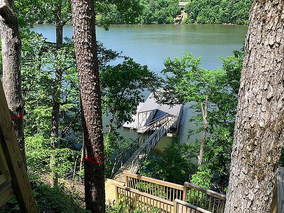 Over 300ft of shoreline! 2.2 acre parcel. Very Private! Single Family Home. 1297 square feet. Master bedroom, master bath, 3rd bedroom and family room added. Property has year round water and single boat dock with a swim pier. Water is 35 feet at the dock! Many bonuses such as storage cabinets, gabion wall for erosion control, concrete floor in crawl space under original house. Nice wood burning stove as well. Lower and upper decks - 56 feet long! Luxury vinyl plank flooring throughout. All this square footage on 1 level! Awesome covered deck. Ceiling in new addition is 13ft high in the family room. Great space!