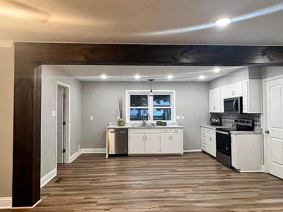 Very pretty remodel. House has an open plan with living room/dining and Kitchen all very open. New paint, new windows and new stainless appliances. Corner property has a drive off of Missile Base and off of Oakdale Church Road. Partially fenced. Shop is wired. Nice covered attached carport with an enclosed storage room Has a storm cellar. Very nice property not far from Judsonia or Searcy
