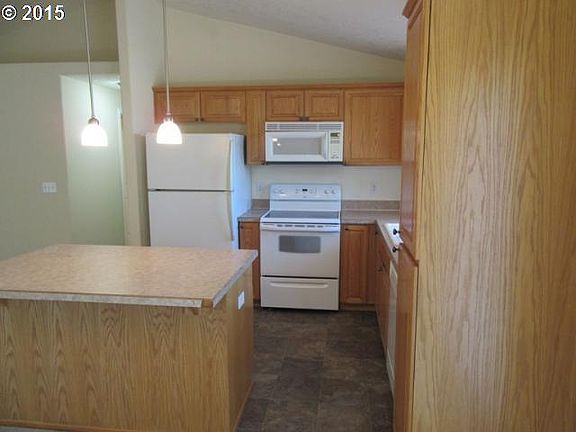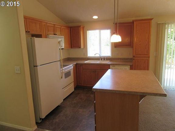 Open floor plan.Vaulted ceilings.New carpet throughout.Island,pendent lights,pantry cabinet , microhood in kitchen.Master has full bath.Central A/C. Room for R.V.Parking and lot backs to greenspace currently outside the UGB.