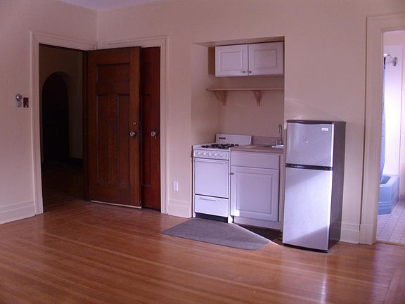 Perfect for one, this is a bright, cheery 16'x16' room with kitchenette and full bath, located in trendy, Highland Park with easy access to the Bryant Street business district and Highland Park recreational opportunities. Bus lines to Oakland, Shadyside, East Liberty and Downtown within one block radius. Safe and quiet on second floor. The room has hardwood flooring and plenty of natural light. The kitchenette is equipped with sink, mid-sized refrigerator and apartment sized stove with four burners and oven. Bath has toilet, sink and full sized "garden" tub/shower. ALL UTILITIES INCLUDED IN MONTHLY RENT. Tenants are responsible for own cable/internet, phone. Laundry in basement. Plenty of on-street, no-permit parking immediately adjacent to the building. One month security deposit. Sorry, no pets, no smokers. One year lease available May 31st.