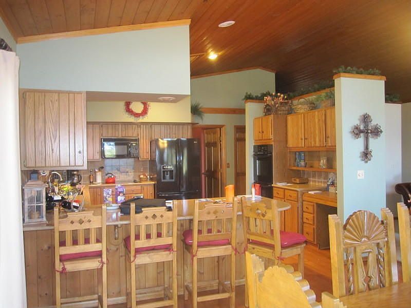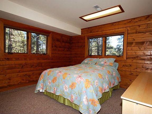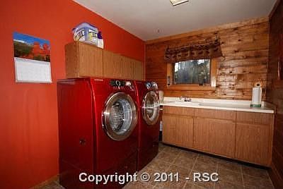 This gorgeous log home rancher will romance you from the moment you walk in! Panoramic views from the back windows frame Pikes Peak! Entry is open w/slate tile & closets, leading to walk-out great room w/wood-burning moss rock fireplace. Beautiful gourmet kitchen complete w/counter bar seating, built-in utility desk, custom tile, double ovens, pantry and quartz counter tops. There is even a w/o to a small deck for the grill! (see supplemental remarks) Main