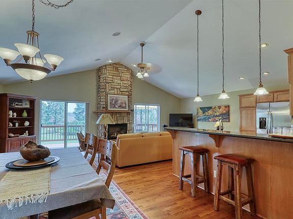Welcome to this well maintained furnished 3 bedroom / 2.5 bath Whispering Pines Townhouse, overlooking an expansive 2-acre greenbelt/park with mountain views from the living room and balcony. 2,084 sq. ft. townhome boasts an open floor plan with vaulted ceilings and solid cherry wood floors. The centerpiece of the living space is a floor-to-ceiling stone gas log fireplace, flanked by windows and a sliding glass door leading to the back deck. The large kitchen, designed for entertaining, features bar seating, abundant cabinet space, granite countertops, and newer stainless-steel appliances. The spacious primary suite on the main level includes wonderful natural light, a walk-in closet with built-in shelving, a tiled shower, a soaking tub, and double vanities. The lower level offers two nice sized bedrooms, one with access to a lower-level patio overlooking the mountains and green space, a bathroom with walk-in shower, and a laundry room. A 2 car heated garage provides plenty of storage for your mountain toys. Home has central A/C, natural gas, electric, water, sewer and good internet. Conveniently located within walking distance to shopping, the Pagosa Rec. Center (complete with 25m pool, hot tub, weight room, racquet ball courts, cardio room), a coffee shop, a grocery store, and restaurants, this townhouse offers easy access to the best of the area. Enjoy PLPOA private lakes for paddle boarding, fishing, and kayaking, the national forest for hiking and camping, a 27-hole golf course, and Wolf Creek for skiing. HOA dues cover landscaping and lawn maintenance, snow removal, water and sewer utilities, and exterior insurance coverage.