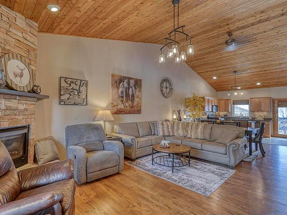 This meticulously maintained and beautifully updated end-unit in Whispering Pines is adjacent to green-space on two sides. Across the street is a community park with gazebo and grills for social gatherings. The two-bedroom, 2-1/2 bath unit comes mostly furnished and offers a warm, inviting mountain feel. The stone entry and rustic wood wall plank open to the great room with vaulted tongue-and-groove ceilings and corner dry-stacked stone fireplace. The kitchen is open to the dining and living room with new stainless-steel appliances, granite countertops, bar seating and lots of cabinet space. The back deck, perfect for evening BBQ’s, was recently extended with a new decorative gate and privacy wood partition. You’ll love the details and high-end updates to include solid core doors throughout with matching trim, new tile in kitchen, entry and hall, custom tiled showers, granite vanities, designer sinks, waterfall faucets, new ceiling fans and lighting. In-floor heat as well as the corner natural gas fireplace keep the unit warm and cozy in the winter months. Super convenient location near a grocery store, coffee house, lakes, recreation center, golf course and national forest. Enjoy the easy mountain life of townhouse living so you can play more and work less.