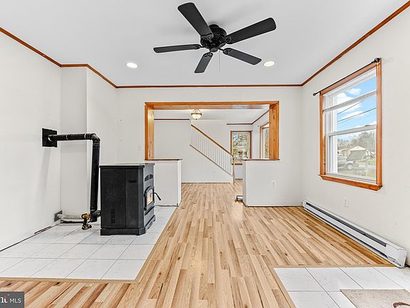 Welcome to Northern Harford County living at its best, where charm and potential converge on a sprawling .83-acre property. Upon entry, you are greeted by not one, but two inviting front sitting rooms adorned with a cozy pellet stove, that is capable of heating the whole home during the colder months. Venture down the hall, where an updated kitchen awaits, complete with stainless steel appliances, a pantry, and a dining area seamlessly connecting to the enchanting backyard. The main level graciously hosts the primary bedroom, full bathroom, and a versatile office space that could easily transform into a fourth bedroom, offering a harmonious blend of functionality and style. Upstairs there are two additional bedrooms. The basement is unfinished and ready for a new owners vision. Outside, the property has two driveways, two sheds—one of which has electricity—and a 24x24 metal garage featuring a 100 amp service. SOLD STRICTLY AS-IS. Welcome home!