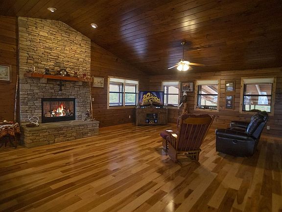 Amazing log look cabin look home on 7 plus acres. Private drive with automatic gate for privacy and security. Paved driveway with gravel turn around and RV Parking. RV parking offers a concrete pad, pole barn style roof and electricity. 3 sided wrap around porch with Bluff Mountain Views and layered mountains from the hot tub. This freshly stained cabin has a new roof,HVAC, hot water,flooring,well pump heater 2 large master bedrooms with walk in closets and an office/ 3rd bedroom with closet. Plenty of storage in the home with a utility room and a large closet in the living room area at front door. Half bath off the living room and kitchen. All stainless steel Frigidaire Gallery appliances in kitchen. True wood burning floor to ceiling stacked stone fireplace. All new hickory wood floors throughout, tile in wet areas, tongue and grove on ceilings and walls in living room. This cabin is located just minutes from shopping and approx 45 mins from hiking in GSMNP. This newly remodeled property is accessible year round and would make a perfect full time residence or an overnight rental? Then come make this your dream home in the mountains of TN.