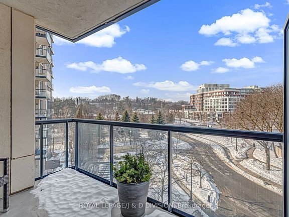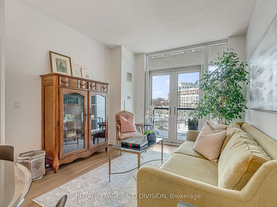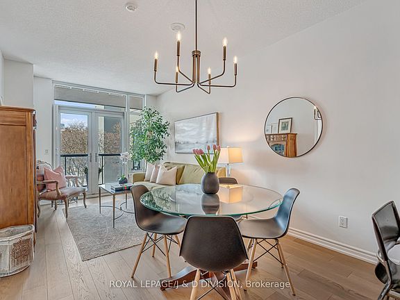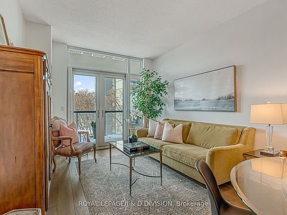 Welcome to a bright and beautifully appointed 1-bedroom plus den suite at The James Club, a well-constructed building that immediately feels like home. This thoughtfully designed, open-concept living space is flooded with natural light, featuring a modern kitchen with full-height cabinetry, stone counters, full-sized appliances, and a breakfast bar. The spacious dining area comfortably seats 6-8, flowing into a living room with floor-to-ceiling windows and French doors that extends your living area outdoors to a deep oversized balcony offering quiet views-perfect for morning coffee or an evening glass of wine away from major streets. The layout maximizes both comfort and function, featuring a king-sized bedroom with large closets and a 4-piece ensuite. The den is a true bonus, ideal for a home office, nursery, or guest quarters. With timeless finishes and ensuite laundry, this suite truly delivers on quality. Beyond the unit, The James Club is known for its strong management and excellent amenities, including 24 hour concierge, fitness facilities, indoor pool, party & media room, and welcoming common areas designed to foster a sense of community. Location is a major highlight: situated off Royal York Road on a private Court, you are just minutes from charming Humbertown shops, cafés, and everyday essentials. For those who enjoy the outdoors, nearby green spaces and trails add immense appeal, while accessible transit ensures a stress-free commute to downtown Toronto or around Etobicoke. This condo is a wonderful opportunity for first-time buyers or downsizers looking for a quality property in a well-established area.