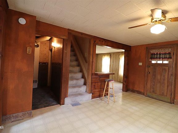 Here's a great opportunity! Spacious 2 Bedroom home with a large eat in kitchen with breakfast bar. First floor bedroom, large living room and comfortable family room. Up stairs bedroom and full bath with dressing and make-up area. There is a covered front porch and a deck with a large partially fenced back yard. Many pre-annuals planted and space for a nice sized garden. There is a large detached two car garage and an asphalt drive with enough room to park up to 6 cars. The home features updated 100 amp circuit breakers which have been professionally inspected, a newer water heater, newer vinyl windows, rear deck. Choose gas or electric range as both hook-ups are in place. Home sold as is with no warranties.