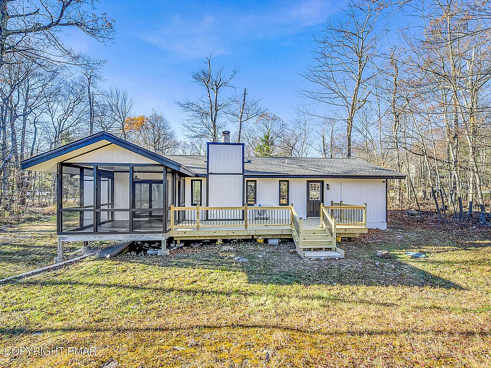 Welcome to this beautifully finished European modern ranch in the heart of the Poconos. Featuring three bedrooms, two bathrooms, and a warm flat-stone fireplace, this home blends modern comfort with timeless style.