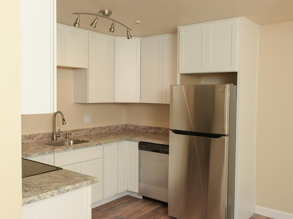 Two bedroom-one bath apartment with a complete, unlived in gut rehab, on quiet street 2 blocks from the JC. Reserved carport parking space below. Shared laundry in courtyard area. Wall Furnace Heater. Available immediately. Rent 1995, with 1995 deposit. Garbage, Water and Hot Water included in Rent.