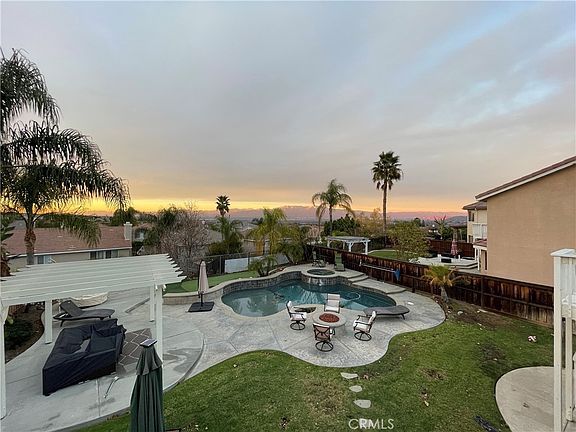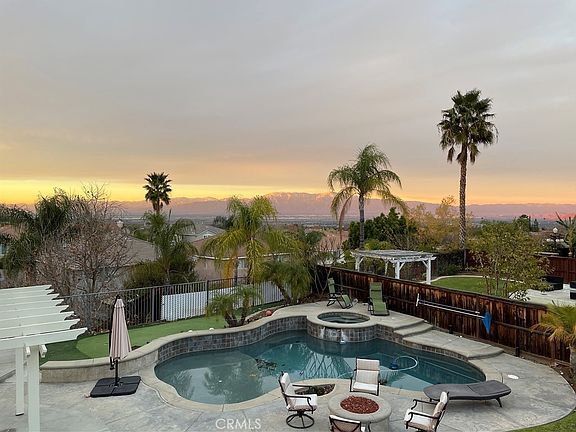 Upgraded saltwater Pool/Spa home with a city view. The backyard is like your own private oasis. Large, covered patio with ceiling fans, balcony, built-in-BBQ, pergola, putting greens and built-in firepit. When you enter this gorgeous home, you are greeted with engineered hardwood floors, a fireplace in the living room, formal dining room with upgraded lighting, an indoor laundry room with sink and downstairs bedroom and bathroom. The kitchen has been remodeled upgraded stainless-steel appliances, a double oven, large island and walk-in pantry. Built-in wine bar area with glass shelves and bar refrigerator. The family room has custom built-ins and a second fireplace. The family room is located just off the kitchen, perfect for entertaining. Upstairs there are four bedrooms, two bathrooms and a loft area. The master bedroom is huge with a retreat, double sliding glass doors that take you out to the balcony to enjoy your city views and sunsets. The master bathroom has been totally remodeled with a separate soaking tub, frameless shower, new countertops, double sinks and new upgraded lighting system. Large walk-in closet just off the master bathroom. Large bedrooms upstairs, remodeled bathroom and all new carpeting. All this with a three-car garage and located on a cul-de-sac. This home is within walking distance of Eisenhower Elementary School. This one will go quickly! See this today as it will be gone tomorrow!