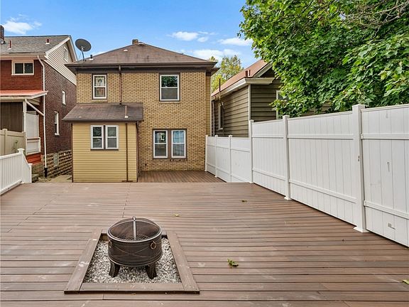 Wow! Lots of Updates! Just move in! Light & Bright best decsribes the living room with an original decorative fireplace and 2 stained glass windows, Dining room with 3 stained glass windows & neutral decor, New kitchen in 2022- Kitchen has all wood cabinets & soft close drawers, new laminate flooring, Quartz coutertops, new fixtures & stainless steel appliances, Second updated full bath in lower level, Original trim & wooodwork throughout, Warm modern paint colors, Other updates include-A/C unit-2019, New water tank-2019, Furnace-2009, New sewer line to street 2019, Updated windows, Walk-up 3rd. floor attic-could be finished to 4th. BR, Outside you'll enjoy a private super-sized multi level trek deck with firepit, Easy yard to maintain-not much grass to cut, 2 car detached garage with room for additional parking in front of garage, Easy access to everything-schools, shopping, and downtown Pittsburgh, It's a great location. This one is move in ready & ready for quick occupancy! Nice!
