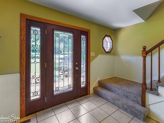 Beautiful Home w/Scenic Views on a half acre wooded lot. The backyard makes you feel like you are at a Resort. Perfect home for Family Parties and Bonfires!! Open concept Kitchen w/white cabinets, Granite, Double oven, Breakfast bar & Stainless Steel Appliances. Refinished Hardwood Floors on the entire first floor, Newer carpet upstairs. The Finished Walkout-out basement provides even more living Space. Home has Aqua-pur Water Filtration system & Tankless Water Heater. Roof is 4 yrs NEW and has Gutter Guards (no gutter cleaning necessary), Newer Washer & Dryer~ Extra room to park on the side of the garage, City Sewer & Water.