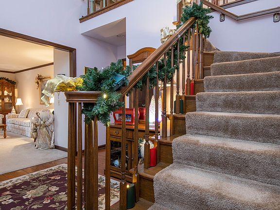 SBR. Beautiful home in desirable Aberdeen subdivision. Spacious 2 story entryway. Formal living and dining rooms with crown molding. Great family room with vaulted ceilings, peg oak flooring, fireplace and lots of windows overlooking stunning backyard. Kitchen opens to eating area with sliding doors to sunroom. Spacious master bedroom with en-suite bath features granite counters and walk-in shower. Additional bedroom on main floor is currently being used as a den. Huge laundry/mud room, full bath and powder room area also located on the main floor. The upstairs features catwalk overlooking the family room and two large bedrooms and full bath. Large rec room in lower level and lots of storage space with built-in closets. 3.5 car attached garage have epoxy floors. All this situated on a gorgeous 1.5 acre lot with circle driveway. Newer windows and roof. Immaculately maintained. Boone county schoos and taxes. Quick access to I-90 and MercyHealth Hospital.