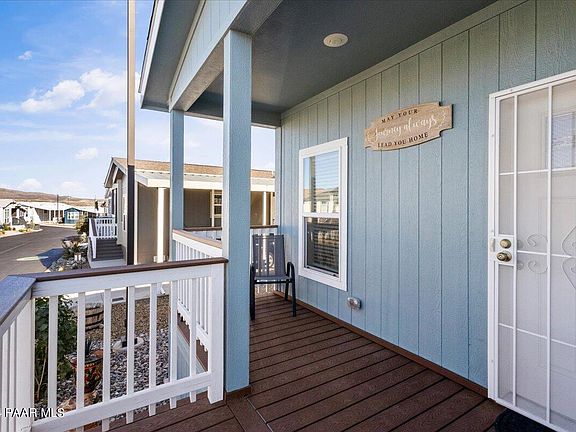 Perched at the top of the 55+ active adult community of Orchard Ranch, this 2 bed/2 bath 2021 Clayton built home invites you into an open and bright main living space great for hanging out with friends or just relaxing. On your way through to enjoy the beautiful views from your covered back porch, you'll find the welcoming primary bedroom w/ensuite and walk in closet. Across the hall is either a 2nd bedroom, office or craft space next to your full 2nd bathroom. Outside is a spacious 2 car carport with upgraded full shades to protect your vehicles that ends with an exterior storage space waiting to be customized to your liking. Enjoy all the amenities at the clubhouse including pickleball, swimming, fitness room and scheduled events-all included in the $560/mo lot lease.