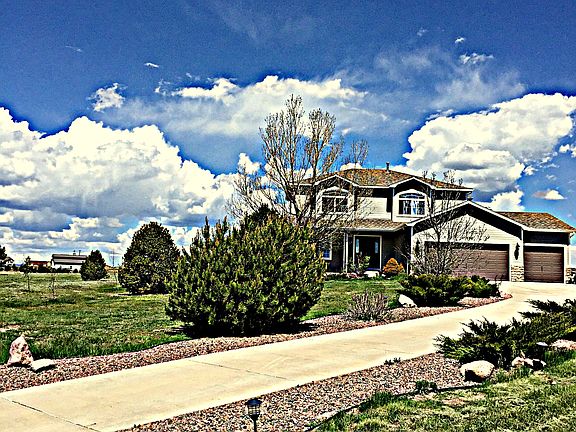 Gorgeous landscaping all around and 1.37 beautiful, peaceful acres at the back of a cul de sac! YOU CAN'T GET ANY BETTER THAN THIS! Start your day with your morning beverage watching the sunrise from the 7x49 front and side porch and end your day on the brand NEW 16x20 high quality composite deck and watch the magnificent sunsets over Pikes Peak and the Front Range. Invite all your friends and make great memories! Walk in to gleaming wood floors and see a lighted nook for your favorite art. Kitchen has Granite counters, stainless appliances, pantry and adjoining desk area. Large Dining Room in the front of the house and casual dining at the bay window facing the mountains. Living Room has NEW Luxury Laminate Plank flooring and there is a convenient recessed area for things you bring in from the garage. There's a stone gas fireplace, too! 1-year old carpet is on the upper level. BIG master has 2 walk in closets - one is REALLY big. His and hers sinks, a jetted oval tub and free standing shower. Three secondary bedrooms (one used as an office) are all good size. Tons of extra food or other storage in the utility room. The basement is finished for a 16x22 Game Room and a 16x17 area which can serve as a theater room or an easy 5th bedroom - it even has a full bath just off it. This owner added an extra 7x9 walk-in closet or storage area. For the connoisseurs there is wine storage in basement. Dual A/C and 2 furnaces help with comfort exactly where you need it and keeps utility costs down. Hunter Douglas blinds on most windows do the same by letting in the light but not the heat. The oversized 3-car garage fits the larger vehicles and additional storage. The back yard is fenced for kids and pets and new hydro-seed lawn is busy growing there and on the North side of the home. 2020 Roof is Class 4 Impact Hail Resistant Shingle which lowers insurance costs. Radon Mitigation System is already here. THIS HOME HAS IT ALL - COME SEE!
