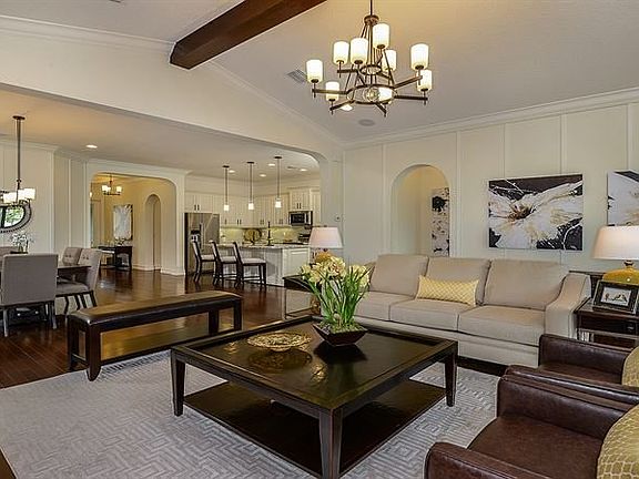 Double door front entry and formal foyer open to a spacious kitchen, casual dining and great room that provide a spectacular transition to outdoor living on the covered lanai beyond. The kitchen features an oversized island, large pantry, and plenty of cabinet space for storage. Split bedroom plan includes a private master suite with luxurious spa-like master bath.