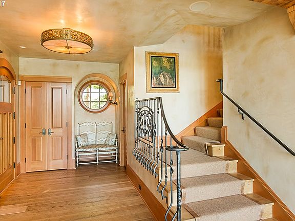 Private, riverfront Dunthorpe home with walled courtyard entrance. Views of Waverley CC & sneak peaks of Mt. Hood. Two master suites, studio/guesthouse & outdoor entertaining space with full kitchen. Italian plaster, salvaged barn wood floors, & reclaimed beams throughout. Custom chef's kitchen & butler's pantry with 2nd full set of appliances. Garden with soaking pool. Originally a 1916 carriage house with rights to build boat dock.