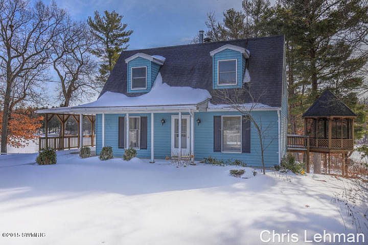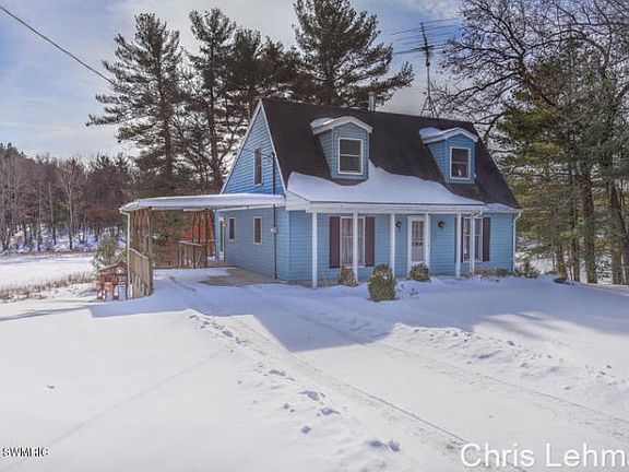 A nature lovers dream!!! 4 bedrooms 3 full baths and natural gas just off a paved road less than 15 minutes from 131. Here you can enjoy the sunrise and the sunsets overlooking the peninsula on the lake. Full of wildlife surrounded by pines and hardwoods, sandy beach and beautiful lake frontage. Great for entertaining with a wrap around deck that features a screened in gazebo for them warm summer nights. Large back yard with fire pit and underground sprinkling with a full walkout basement. The large windows throughout the home allow plenty of natural lighting with breathtaking views. This home was well thought out from the glass sliding doors, wood burning fireplace and home office. More acreage available. Call today to schedule your personal viewing as this is a hard to find property.