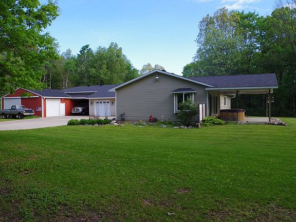 For Sale By Owner (It's time for us to downsize.) "One Owner", 4+-bedroom, 3-bath ranch home and 5400 Sq. Ft. Warehouse with NATURAL GAS & High Speed "Charter" internet all sitting on 10 acres and nestled off the road in a park like atmosphere, surrounded by trees with trails for walking or ATVs and wildlife "observation" blind. It has a recently up-dated kitchen with quartz countertops, under-cupboard lighting, wood floor, large pantry and stainless appliances. Main floor laundry, covered back porch accessible from both master suite and livingroom with a hot tub for relaxing and gas line for grilling. Full basement and attached 2-stall garage. 30 X 40 pole barn. A 5400 square foot warehouse attached off the back of the garage for the Extreme Hobbiest or home business owner/entrepreneur. The building is well insulated and heated; office areas and restroom are air-conditioned. Both home and warehouse offer a security alarm system, along with transfer boxes for generator backup power. All this, just 2 miles from Wabasis Lake County Park with public beach area, campground and boat launch to enjoy the 418 acre all sport waters. A DEFINITE MUST SEE! Shown by appointment. Contact owner @ 616-835-9098 NO Real Estate Agent Solisitation Calls, THANK YOU !!