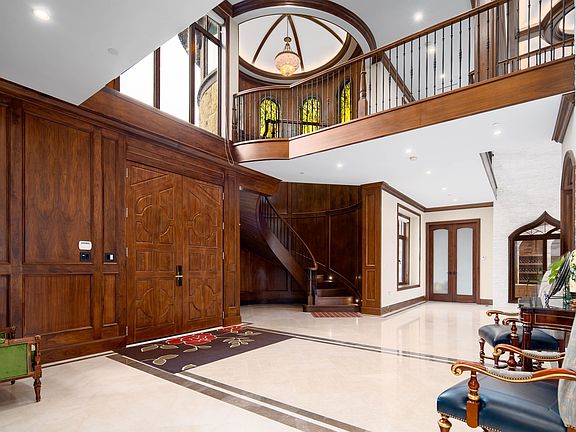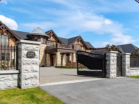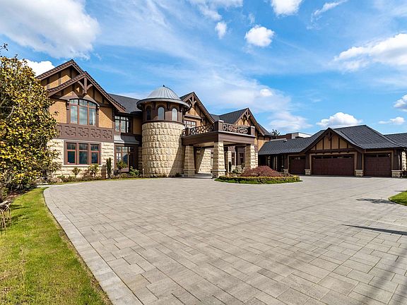 11000+ sf 1.5 yr new Shaughnessy style mansion on a private 4.5 Acre property in the heart of Richmond. No expense spared, this classic mansion was built on iron pilings; stately granite stone and wood shingle façade; the interiors features extensive use of black walnut wood wainscotting, marble, European arched windows, castle Turret, lots of stain glass, baroque style bronze chandeliers, elevator, 2 sets of laundries, 7bdrms & 8 baths (2 masters) plus a studio outhouse. Nicely landscaped private back yard features O/D kitchen, an aluminum Pergola made to look like wood, perfect setting for huge BBQ parties. A mature 3.5 acre blueberry farm forms an extension of the back yard. One of the last few NEW mega mansions in Richmond.
