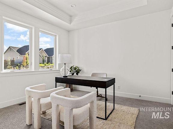 MOVE-IN-READY!! Full fencing and epoxy garage flooring is included! Welcome to the Emerald XL, where every space invites you to relax, entertain, and savor the beauty of the Boise foothills. Imagine mornings in your sunlit dining room with expansive views, while evenings flow effortlessly from a chef’s kitchen to a great room adorned with coffered ceilings, thoughtful built in shelves, wooden beams, and a grand stone fireplace. Each bedroom serves as a personal retreat with its own en-suite bath, giving everyone a place to unwind. The bonus room opens to an oversized covered patio, perfect for dining alfresco or cozy gatherings, all just steps from neighborhood trails, parks, and Cartwright Ranch’s inviting community pool and clubhouse.