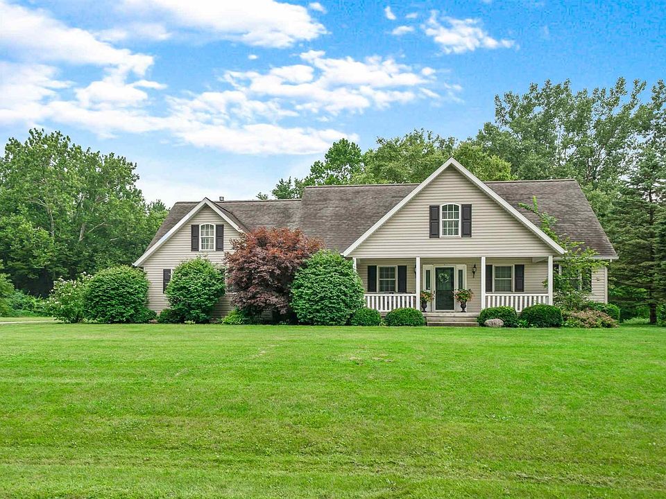 If you're looking for a private, spacious property, but still close to town -- then this is a house you won't want to miss! This 3 bedroom, 3.5 bathroom home is situated on a large lot (measuring just under 1 acre) and is absolutely charming! The oversized front porch leads the way to a warm and welcoming interior, offering an open floor plan and many updates throughout. Just to the left of the foyer is a formal dining room. The kitchen offers a breakfast nook, eat-in bar, stone countertops and stainless steel appliances. The gorgeous white-washed brick fireplace is a main focal point in the living room. Just on the other side of the living room is a 3 seasons room that overlooks the large, and private, yard. This home is complete with a split floor plan and a large bonus room above the 3-car garage.