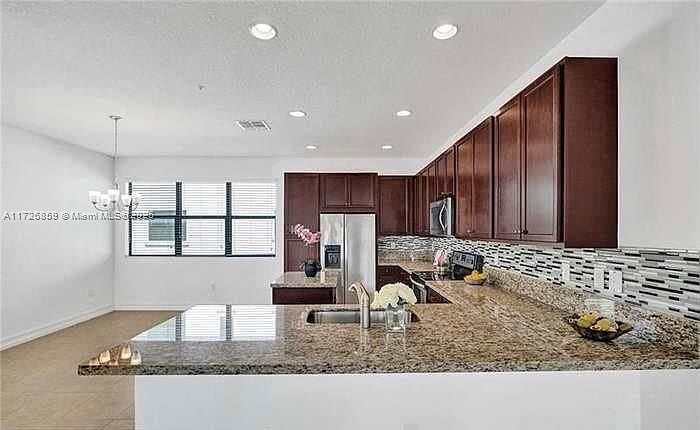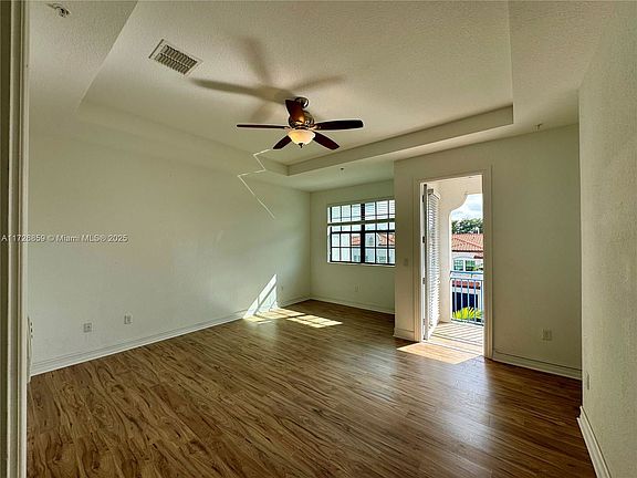 Lovely tri-level townhouse, located in a secure gated community, offers a perfect blend of modern style, comfort, and convenience. Featuring impact windows, two-car garage, new flooring, plenty of natural light. 3 Bedrooms with private baths. One bedroom with Bath is located on the first floor, ideal for guest or office setup. Second floor, open kitchen with wood cabinets, stainless-steel appliances & granite countertops guest bathroom & large balcony. Top floor has 2 bedrooms, 2 baths, and laundry area. The master suite offers a peaceful retreat, with a walk-in closet, large bath & a private balcony. Gated community with nice amenities such as a pool, fitness center, and much more.
